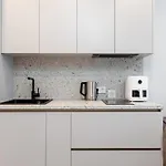 - ❓¿Hay una cocina disponible en el apartamento para uso de los huéspedes?Sí, el apartamento está equipado con una cocina y ofrece también una nevera, menaje de cocina y cristalería.